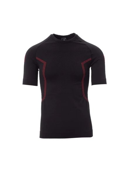 Pánské termo tričko s kulatým výstřihem a krátkým raglánovým rukávem. Měkký strečový úplet, speciální textury na hrudi a na zádech, na bocích spirálové reliéfní motivy pro zajištění správné prodyšnosti a stálé termoregulace. Pohodlný žebrovaný lem kolem krku, na rukávech a spodním okraji. Ergonomický střih bez postranních švů zajišťuje dokonalé přizpůsobení tvaru těla
