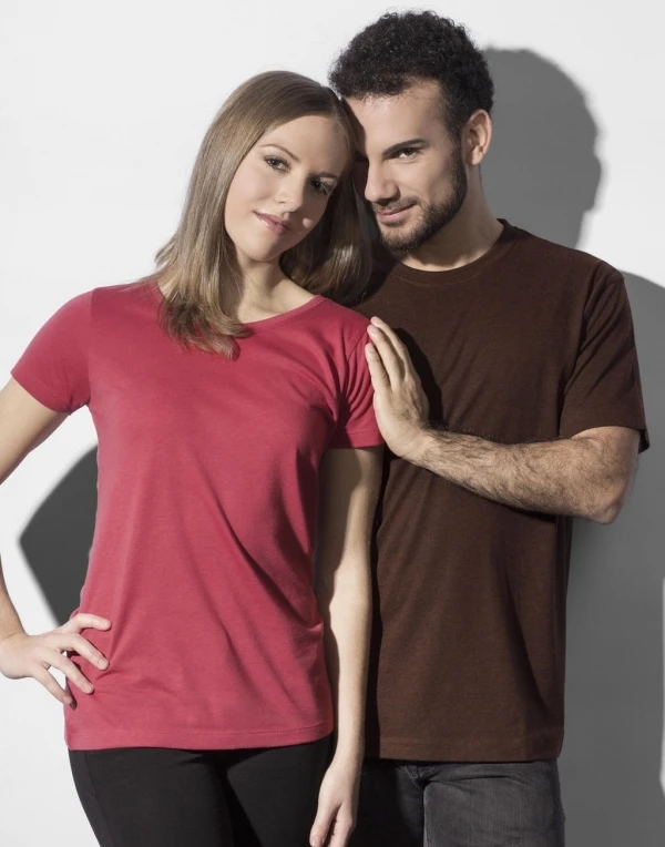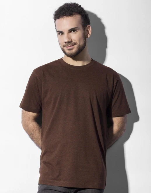 Kulatý žebrovaný výstřih, páska za krkem, postranní švy, dvojitě prošité lemy rukávů a spodní lem, neutrální štítek s velikostí na krku, medium střih.