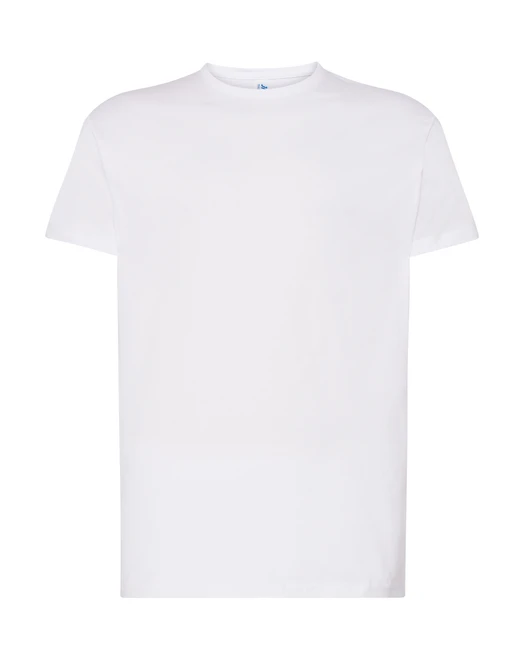 Krátký rukáv, kulatý výstřih, odnímatelná cedulka, dvojité švy na výstřihu, dolním lemu a rukávech, 1x1 žebrování okolo výstřihu, zpevňující páska za krkem od jednoho ramene k druhému, vhodné pro digitální tisk.