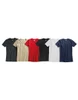 Kulatý výstřih, rovně střižené krátké rukávy, boční švy, dvojité švy, pohodlný a měkký materiál, předepráno pro zajištění stálosti střihu a barev, s obsahem česané bavlny s vysokým vlasem, lehká údržba, příjemně hladký a měkký povrch.