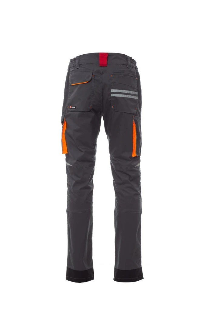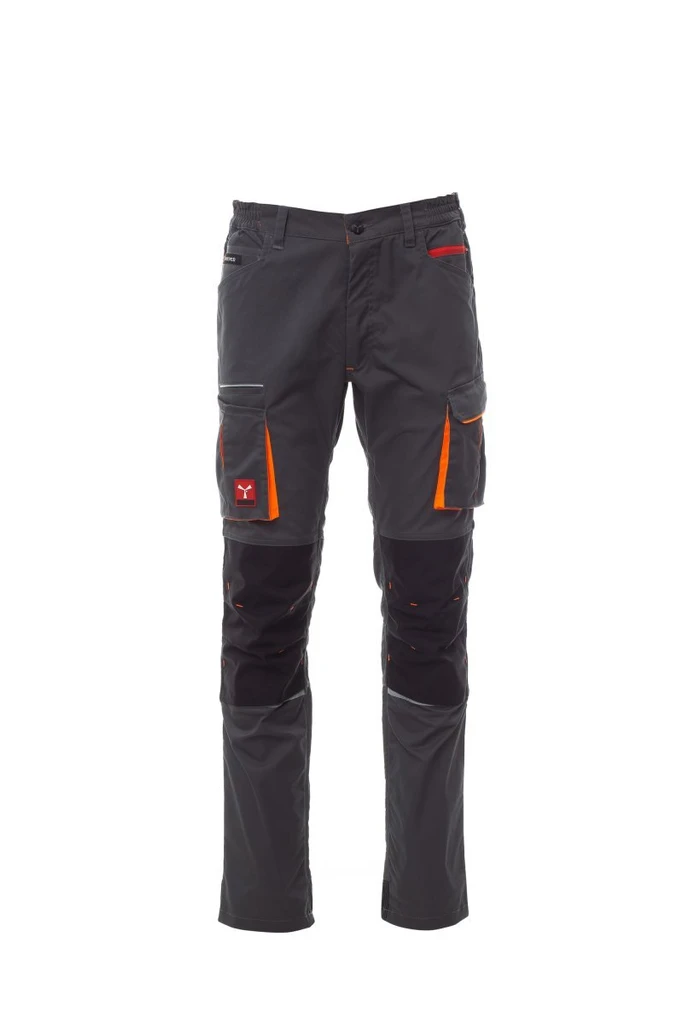 Unisexové kalhoty, stretch, celoroční, gumičky na bocích a poutka na pásek v pase, zapínání na zip a přizpůsobený knoflík. Na přední straně kalhoty mají dvě tvarované kapsy, na pravé straně kapsičku na mince a na levé straně bezpečnostní kapsičku na zip. Na přední straně levé nohavice je kapsa s klínkem, klopa na suchý zip a pouzdro na jmenovku. Na přední straně pravé nohavice je kapsička na telefon s reflexním lemem a kapsička s klínkem. Obě nohavice mají připevnění pro chrániče kolen z Nylon Oxford 500D, z kontrastní látky (s rozepínáním zezdola) a reflexní pásky, které signalizují rozepnutí. Na zadní straně je kapsa s malou klopou na suchý zip a kapsa bez klopy se 2 reflexními páskami, kapsička na svinovací metr (pravá nohavice), reflexní vložky ve výšce kolen (obě nohavice), patní chrániče z kontrastní látky (obě nohavice). Dále jsou přítomny: - prošívání trojjehlou v rozkroku, na vnitřní a vnější straně nohavic - kontrastní výztuže na různých místech. Italské prostřední velikosti 48-50-52 mají běžnou vnitřní délku nohavic 82 cm.