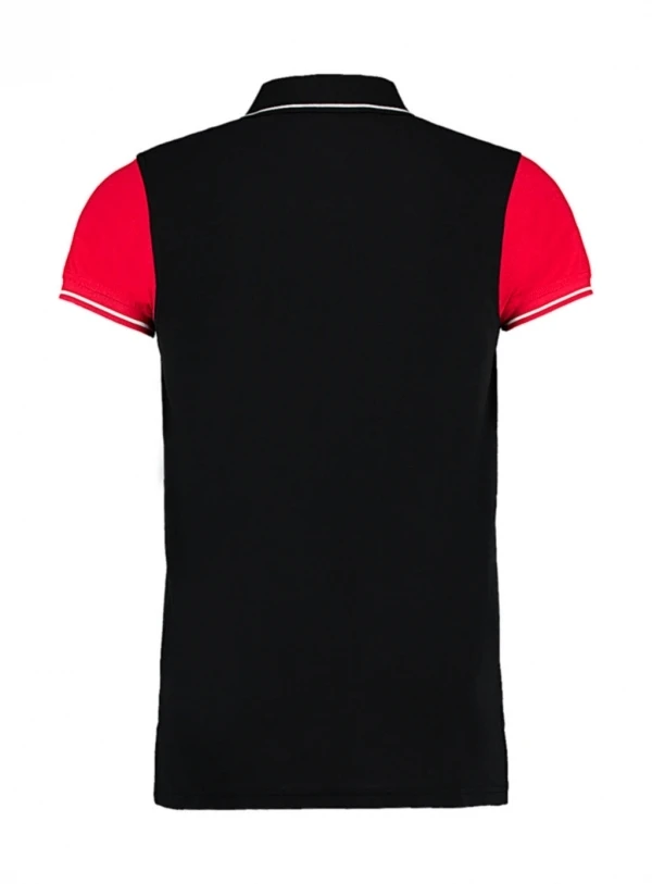 1x1 žebrovaný plochý pletený límec s kontrastním proužkem, 3 knoflíky, kontrastní výztužné pásky na zadní straně krku a na bočních rozparcích, žebrované ploché pletené manžety s kontrastním proužkem, dvojitě prošité průramky u ramen a kolem manžety, módní střih.