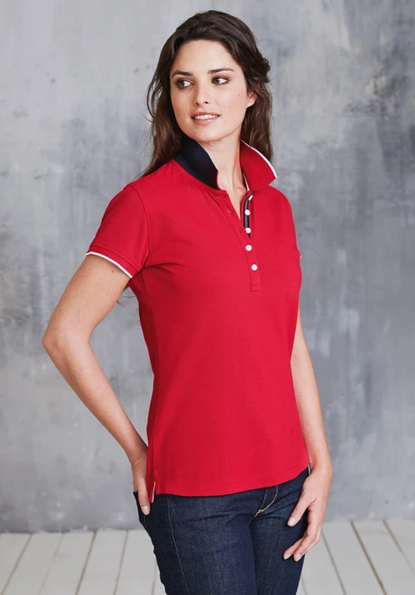 Kontrastní barva pod límečkem, kontrastní barevné zpevnění krku, rukávy s kontrastním lemováním, dvojité prošívané zakončení, límeček ze dvou vrstev - může být nošeno nahoře či dole, zapínání na 5 knoflíčků.
