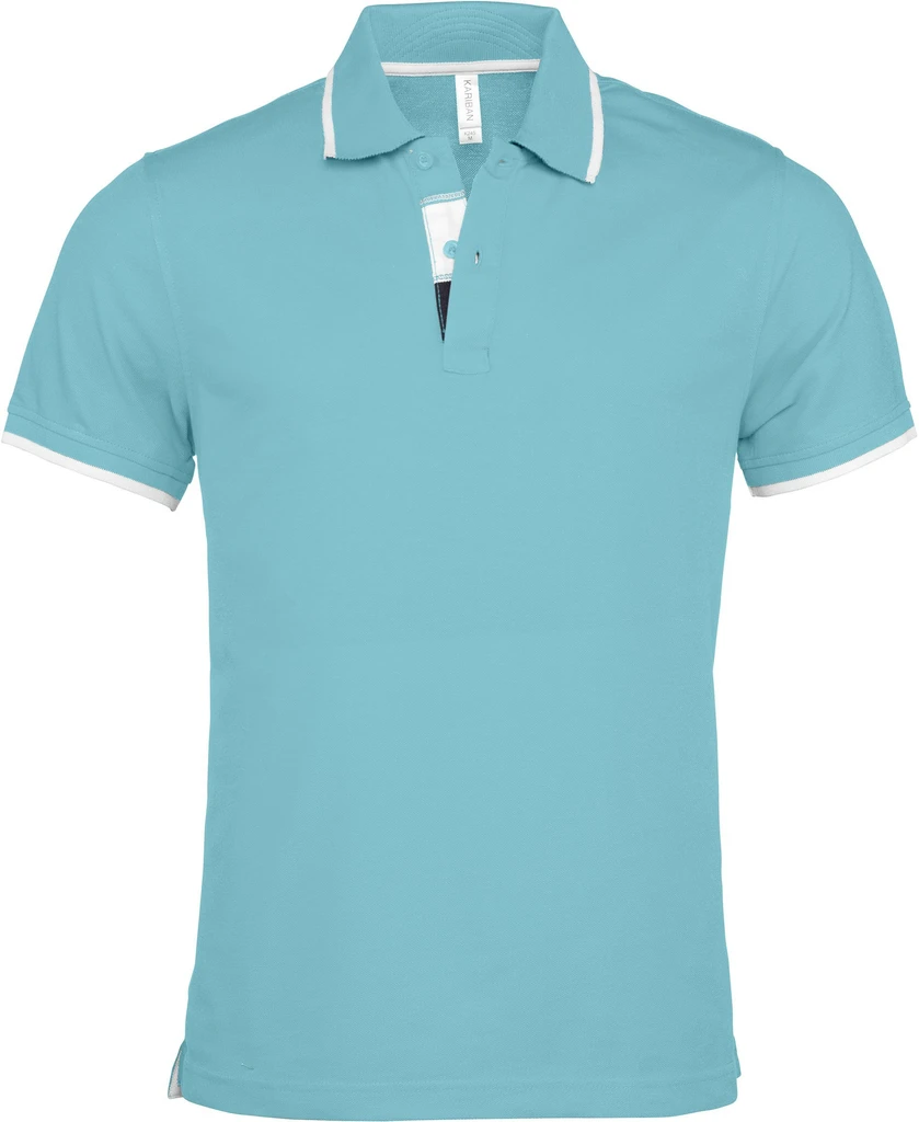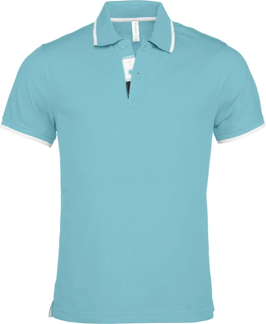 Kontrastní barva pod límečkem, kontrastní barevné zpevnění krku, rukávy s kontrastním lemováním, dvojité prošívané zakončení, límeček ze dvou vrstev - může být nošeno nahoře či dole, zapínání na 2 knoflíčky.