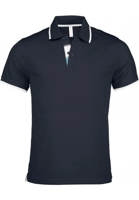 Kontrastní barva pod límečkem, kontrastní barevné zpevnění krku, rukávy s kontrastním lemováním, dvojité prošívané zakončení, límeček ze dvou vrstev - může být nošeno nahoře či dole, zapínání na 2 knoflíčky.