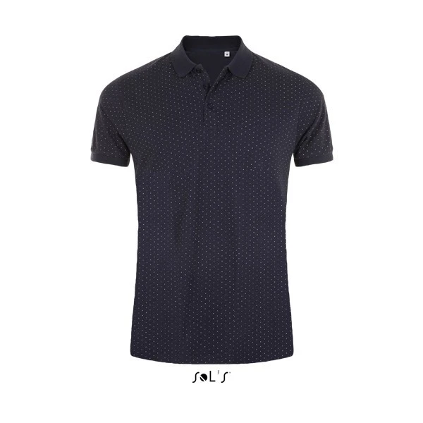 KVALITA: ÚPLET PIQUÉ 180, 100% prstencová bavlna; Žebrovaný límeček a manžety, zpevňující lemovka na límečku, puntíkovaný vzor, krátké rukávy, zapínání na 3 knoflíky tón v tónu, boční rozparky, střiženo a sešito; Certifikát: STANDARD 100 by OEKO-TEX®