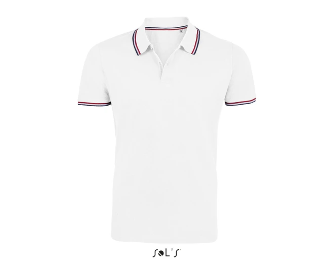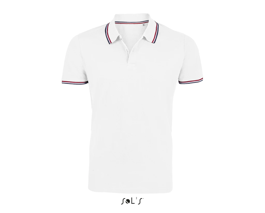 KVALITA: PIQUÉ 200, 100% bavlna; Pruhovaný límeček a manžety na rukávech s žebrováním 1x1, tkaná zpevňující páska za krkem, krátké rukávy, léga se 3 knoflíčky, střiženo a sešito, kontrastní pruhy na límci a manžetách, zpevnění na vnitřní straně bočních rozparků a na vnitřní straně límce; Certifikát: STANDARD 100 by OEKO-TEX®