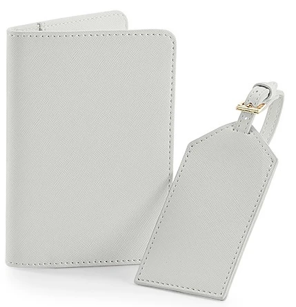 Materiál: 100% PU vzhled kůže; dvoudílná sada, rozměry pasu: 10,5 x 14,5 cm; rozměry jmenovky: 6 x 11,5 cm; Štítek TearAway pro snadný rebranding, jemné zrno Saffiano, podšívka jemná na dotek, zlaté lesklé kovové ozdobné prvky