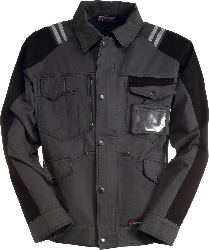 V džínovém stylu, kontrastní vsadky a prošití, přední zapínání na zip s klopou na cvočky, vypasovaný střih, nastavitelné manžety, nastavitelný pas na cvoček, 2 klokaní kapsy se speciálním zavíracím systémem, 2 náprsní kapsy, odnímatelná jmenovka, reflexní lemování na zádech, reflexní proužky na ramenou