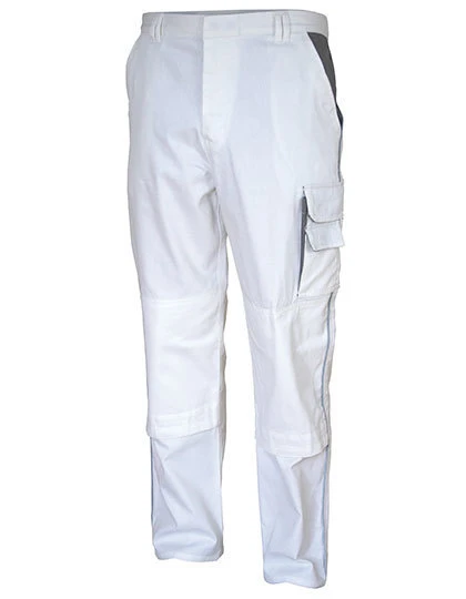 Kovový zip YKK, flexibilní pas s poutky na pásek, variabilní zapínání, KlettOmatic (patentky na suchý zip), zadní kapsy s vnitřním zapínáním na suchý zip, bezpečnostní kapsa se skrytým zipem, kapsa na pravítko/telefon/pero s nabíraným záhybem, kolenní kapsy pro volitelné chrániče kolen, reflexní lemování na bočních švech, lze prát na 60 stupňů, Oeko-Tex® Standard 100 Certifikace.