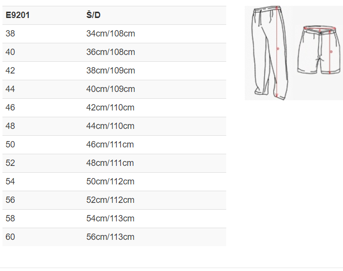 | Velikosti | 38, 40, 42, 44, 48, 50, 52, 54, 56, 58, 60 |