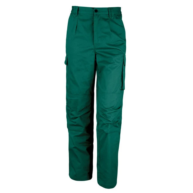 Dlouhý zip s patentkou, pásek s poutky, boční kapsy na ohřívání rukou, dvojité boční švy, zpevnění na namáhaných místech, odolné, pevné k stálému nošení, délka nohavic "34", náhradní 5 cm látky pro případné prodloužení, vhodné pro výšivku.