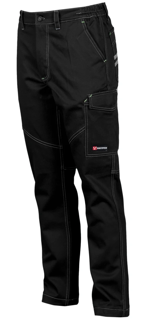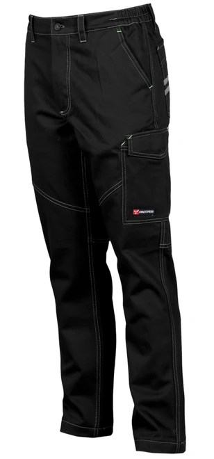Unisex střih, zapínání na zip a plastový knoflík, poutka na pásek, elastické boky, 2 klasické přední kapsy, 1 boční kapsa se speciálním zavíracím systémem, 2 zadní kapsy (1 s klopou na suchý zip), trojité švy v rozkroku a na vnitřních nohavicích, kontrastní panely a švy, reflexní pásky na zadních kapsách
