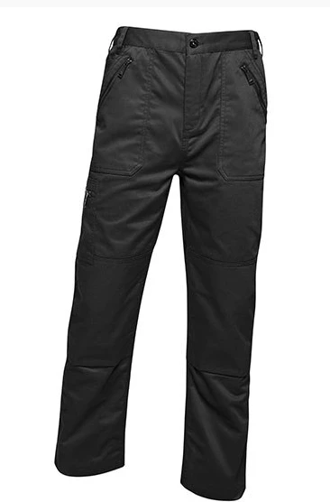 Odolná tkanina, odolná vodoodpudivá úprava, částečný elastický pas s poutky na pásek, zapínání na kovový knoflík a zip, zesílený šev v rozkroku, 2 přední kapsy, 1 s malou kapsičkou na mince, vícenásobná kapsa na zip, 1 boční kapsa na zip, 2 zadní kapsy, kapsy na kolenní chrániče, zesílené švy s trojitým prošíváním