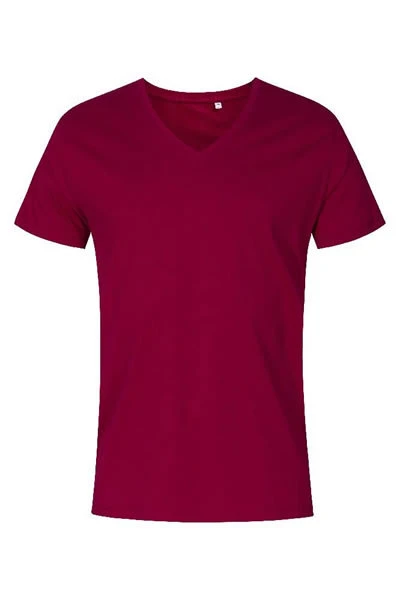 Jedinečné jednožerzejové tričko s výstřihem do V a límečkem z vlastní tkaniny je vyrobené z dlouhé základní česané bavlny. Zvláště hladký povrch a splývavá látka dodávají triku jedinečný, elastický a hedvábný povrch. Tričko má úzký střih a je vyrobené s bočními švy. Certifikováno podle OEKO-TEX®
