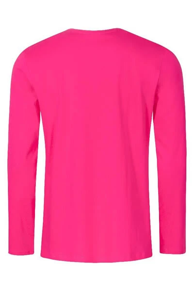 Jednožerzejové triko s dlouhým rukávem, výstřihem do V a límečkem z vlastní tkaniny je vyrobená z česané bavlny. Zvláště hladký povrch a splývavá látka dodávají triku jedinečný, elastický a hedvábný povrch. Tričko má úzký střih a je vyrobené s bočními švy. Certifikováno podle OEKO-TEX®