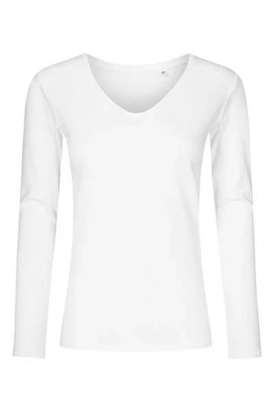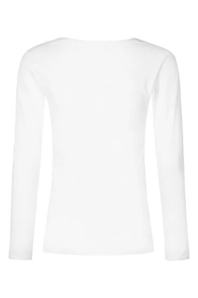 Jednožerzejové triko s dlouhým rukávem, výstřihem do V a límečkem je vyrobené z česané bavlny. Zvláště hladký povrch a splývavá látka dodávají triku jedinečný, elastický a hedvábný povrch. Tričko má úzký střih a je vyrobeno s bočními švy. Certifikováno podle OEKO-TEX®