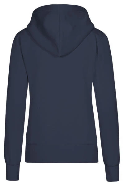 Mikina s kapucí z moltonové směsi s česaným vnitřkem, klokaní kapsou a spandexovými manžetami u krku, rukávů a lemu je vyrobená z dlouhé střiže česané bavlny a polyesteru. Mimořádně hladký povrch a měkce padnoucí tkanina dodává mikině jedinečný, elastický a hedvábný povrch. Mikina má úzký střih. Certifikováno podle OEKO-TEX®