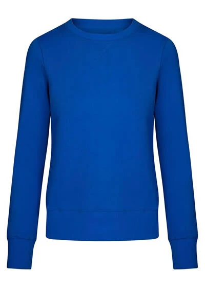 Jedinečná mikina z moltonové směsi s česanou vnitřní stranou, plochými švy a elastanovými manžetami, rukávy a lemem je vyrobená z dlouhé střiže česané bavlny a polyesteru. Mimořádně hladký povrch a splývavá látka dodávají mikině jedinečný, elastický a hedvábný povrch. Mikina má úzký střih. Certifikováno podle OEKO-TEX®
