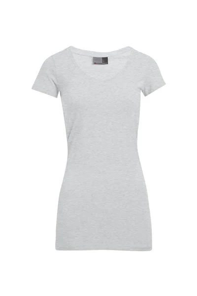 Moderní extra dlouhé jednožerzejové triko s výstřihem do V s elastanem v malém žebrovaném výstřihu je vyrobené z česané bavlny s elastanem pro větší pohodlí. Tričko má vypasovaný střih a je vyrobené s bočními švy. Certifikováno podle OEKO-TEX®