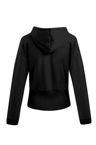Moderní molton mikina s kapucí, nečesaná disponuje celopropínacím plastovým zipem v tónu, rovněž elastanovými manžetami na rukávech a lemu. Mikina má široký sedlový pas, poutka v žebrované vsadce a přední kapsy s kontrastním žebrem. Mikina je vyrobená z česané bavlny s obsahem elastanu pro větší volnost pohybu a má střih obepínající postavu.