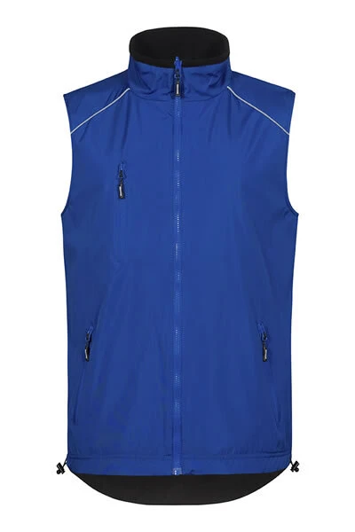 Oboustranná vesta s napoleonovou kapsou na přední straně disponuje dvěmi bočními kapsami na zip. Vesta má našitý kroužek na klíče v boční kapse, reflexní lemování a tahače zipů. Vesta je vybavená tunýlkovou stahovací šňůrkou na lemu se stopkami, zahnutým lemem a neviditelným zipem na ozdobu. Má moderní střih.