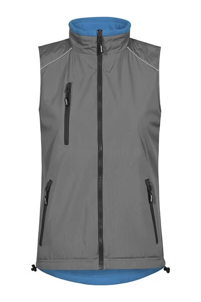 Oboustranná vesta se stojáčkem, napoleonovou kapsou na přední straně, dvěmi bočními kapsami na zip (na přední/vnitřní straně) má našitý kroužek na klíče v boční kapse, reflexní lemování a tahače zipů. Vesta disponuje tunýlkovou stahovací šňůrkou na lemu se stopkami, zahnutým lemem, neviditelným zipem na ozdobu a má moderní střih.