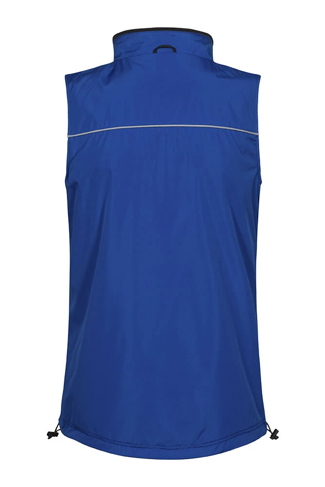 Oboustranná vesta se stojáčkem, napoleonovou kapsou na přední straně, dvěmi bočními kapsami na zip (na přední/vnitřní straně) má našitý kroužek na klíče v boční kapse, reflexní lemování a tahače zipů. Vesta disponuje tunýlkovou stahovací šňůrkou na lemu se stopkami, zahnutým lemem, neviditelným zipem na ozdobu a má moderní střih.