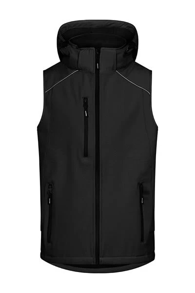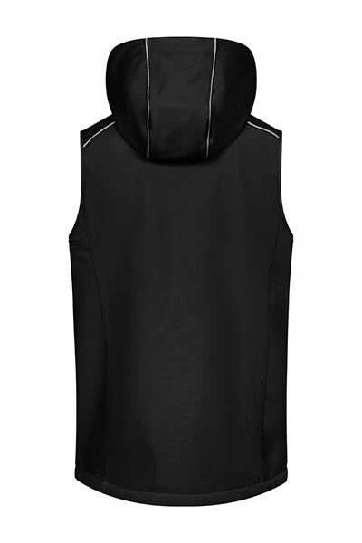 Funkční vesta s odnímatelnou kapucí s regulátorem objemu má voděodolné zipy, ochranu brady, kapsu napoleon, tunýlkovou stahovací šňůrku na lemu se zarážkami na šňůrku uvnitř, delší zadní díl s prohnutým lemem, dvě boční kapsy na zip, našitý kroužek na klíče v boční kapse, reflexní lemování a tahače zipů, panelové švy, štítek neutrální velikosti. Materiál vesty je prodyšný, voděodolný (8 000 mm). Vesta má moderní střih.