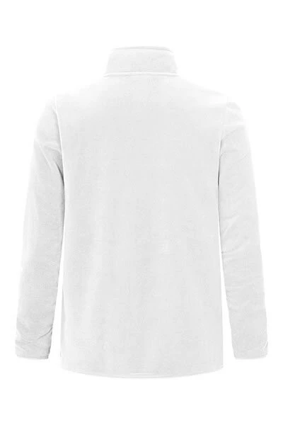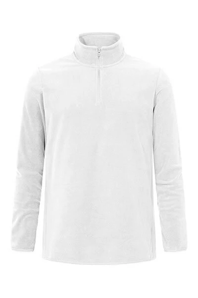 Svetr s polovičním zipem a stojáčkem u krku s nylonovým zipem má úzké elastické manžety a spodní lem, odsazené ramenní a boční švy. Svetr má sportovní moderní střih a je vyrobený z recyklovaného polyesteru s úpravou proti žmolkování na obou stranách.