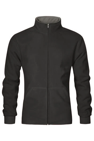 Dvojitá fleecová bunda má stojáček a celopropínací skrytý zip, rovněž úzké manžety s elastickým lemováním a dvě boční kapsy na zip. Vnitřek bundy je v kontrastní barvě a je vyroben z polyesteru s protižmolkovou úpravou na obou stranách. Fleecová bunda má úzký střih.