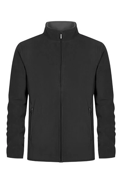 Dvouřadá fleecová bunda má celopropínací skrytý zip, úzké manžety s elastickým lemem a dvěma bočními kapsami na zip. Vnitřek bundy je v kontrastní barvě a je vyrobený z polyesteru s úpravou proti žmolkování na obou stranách. Fleecová bunda má úzký střih.