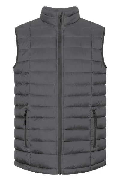 Polstrovaná vesta má voděodolné zipy, stojáček, chránič brady, vnitřní kapsu, celopropínací zip, dvě boční kapsy na zip, stahovací šňůrku na lemu se zdrhovadlem uvnitř, neviditelný zip pro zakončení. Vesta je vyrobená z nylonu (vnější/vnitřní materiál) a polyesteru (vycpávka). Vesta má moderní střih.