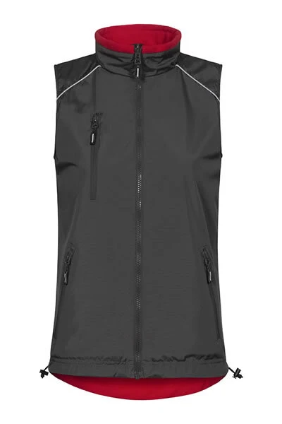 Oboustranná vesta se stojáčkem, napoleonovou kapsou na přední straně, dvěmi bočními kapsami na zip (na přední/vnitřní straně) má našitý kroužek na klíče v boční kapse, reflexní lemování a tahače zipů. Vesta disponuje tunýlkovou stahovací šňůrkou na lemu se stopkami, zahnutým lemem, neviditelným zipem na ozdobu a má moderní střih.