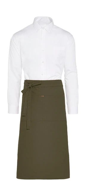 Tato elegantní plátěná bistro zástěra je k dispozici v několika módních barvách. Starožitné mosazné nýty na každé straně kapes poskytují diskrétní, ale módní vzhled. Díky praktické kapse a ideální délce pro velkou svobodu pohybu je ideální pro profesionální týmy nebo v domácnosti. Lze prát na 60°, je také stálobarevný a snadno se udržuje, pro dlouhotrvající svěží vzhled.
