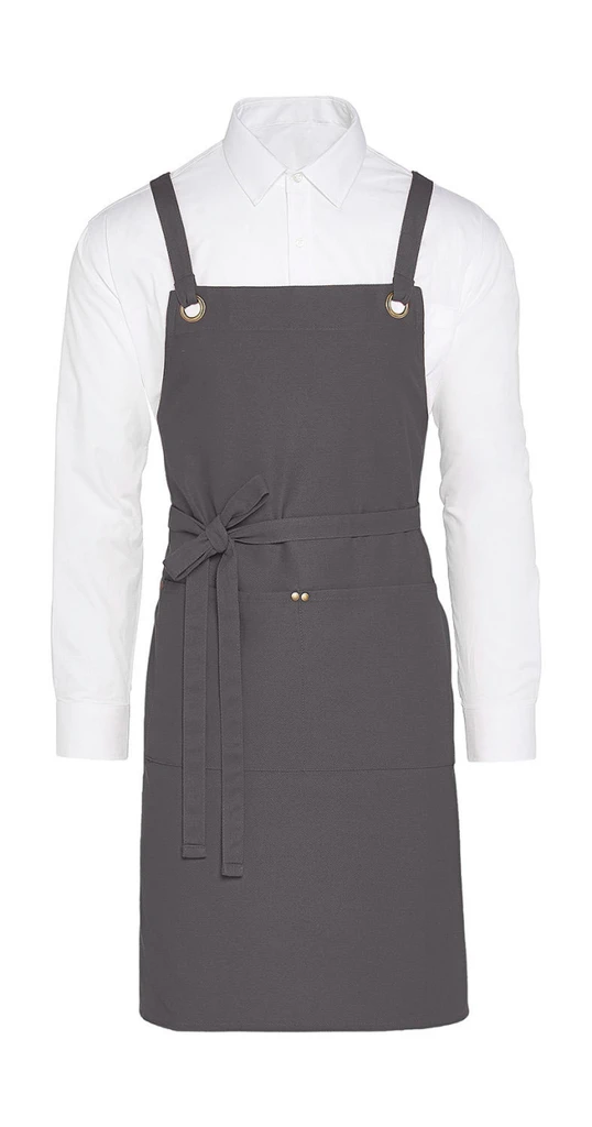 Se svými 2 starožitnými mosaznými očky a nýty je tato plátěná zástěra s překříženým zavazováním vzadu pro mistry! K dispozici v módních barvách, s praktickou přední kapsou a ideální délkou pro velkou volnost pohybu, je ideální pro profesionální týmy a lidi orientované na „módu“. Lze prát na 60°, je také stálobarevný a snadno se udržuje, pro dlouhotrvající svěží vzhled.