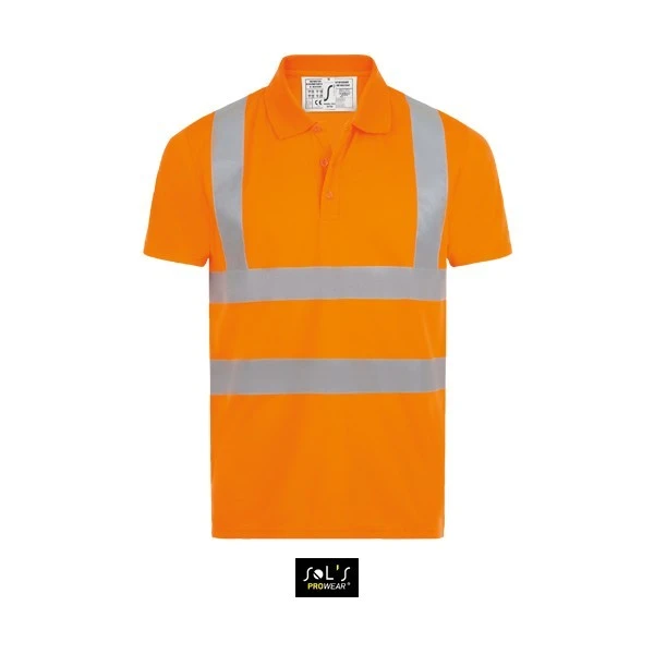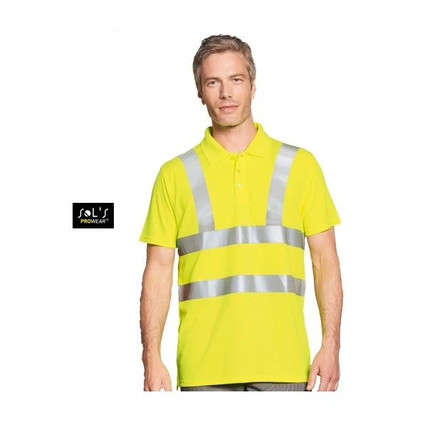KVALITA: MESH 150 - 100% polyester; ISO 20471 Třída II certifikováno; Polokošile s krátkými rukávy, 1x1 žebrovaný límeček, zapínání na tři knoflíčky, dva vodorovné a dva svislé reflexní proužky