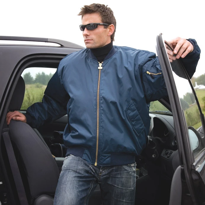 Nepromokavá, větruvzdorná, těžký kovový zip, kapsa se zipem na levém rukávu, boční kapsy s patentním knoflíkem, límec s nápletem, okrajový náplet na rukávech a v pase, vhodná výšivku, transferový tisk.