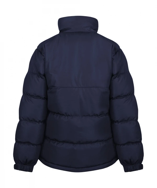 Prošívaná bunda s efektem péřové bundy, odolná proti vodě, větruvzdorná, stojací límec podšitý fleecem, zapínání na dlouhý zip, nastavitelné rukávy na suchý zip, dvě postranní kapsy a jedna vnitřní kapsa na zip, místo pro potisk na zádech a na levé části hrudi, rovný dolní okraj se stahovací šňůrkou se zarážkami, vhodná pro potisk nebo výšivku, vypasovaná, přístup pro dekoraci na zadní straně.