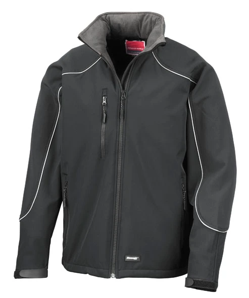 Odolná proti větru a vodě (8.000 mm), nastavitelná kapuce skrytá v límci, reflexní proužek na ramenou a rukávech, ventilační zip v podpaží, dlouhý zip YKK s klopou uvnitř, více vnitřních kapes, konce rukávů se zapínáním na suchý zip, nastavitelná šňůrka v pase se zarážkami, místo pro potisk nebo výšivku na levé části hrudi.