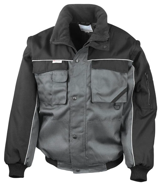 Větruvzdorná, odpuzující vodu, skrytý zip s klopou na patentky, odepínací rukávy na zip, několik vnitřních kapes, kapsa na doklady, očka na provlékání, reflexní pásek na předním dílu a rukávech, prostor pro dekoraci na levé straně hrudníku a na zádech, vhodná pro výšivku, transferový a digitální tisk.