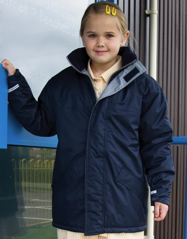 Voděodolná a větruvzdorná (2.000 mm), skrytá trojdílná kapuce v límci se seřizovačem, plné zapínání na 7 mm zip, 2 skryté přední kapsy s klopou a mimořádně teplou fleecovou podšívkou, štítek na jméno v levé kapse, reflexní pásky na nastavitelných manžetách dolní části zad, přístup pro dekoraci na lemu bundy a na levé přední straně, vhodná pro výšivku, přímý, digitální a transferový tisk.