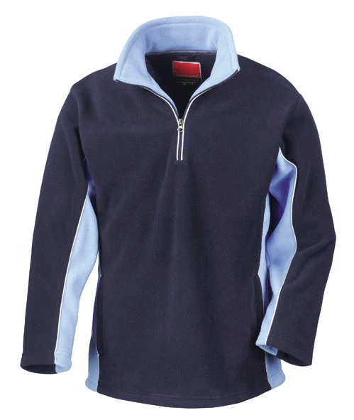 Prodyšná, zpevňující páska za krkem, 1/4 zip, rovné zakončení rukávů bez manžet, postranní kapsy, nastavitelný spodní okraj s elastickou šňůrkou a zarážkami, kontrastní paspulka kolem zipu, na rukávech a po stranách.