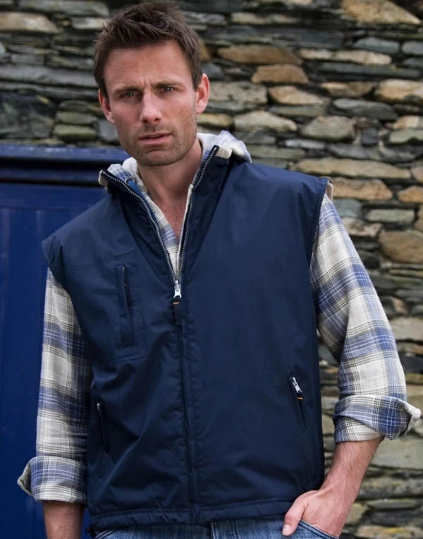 Z jedné strany nepromokavá a větruvzdorná, vysoký límec, dlouhý zip, dvojitý, 4 postranní kapsy (2 na každé straně), 1 kapsa na telefon, prodloužená zádová část, oranžová stahovací šňůrka, skrytý přístup na bočním lemu pro dekoraci.