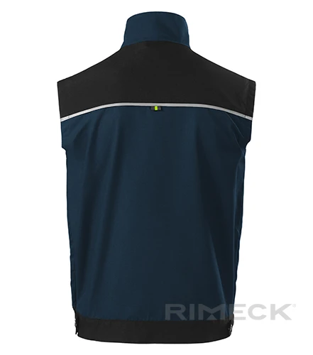 Retroreflexní páska na předním i zadním dílu, multifunkční kapsy, poutko na zavěšení, v boční části dolního kraje možnost nastavení šíře obvodu - na 3 cvočky, CORDURA® použita v kontrastní barvě, prát na 40°C.