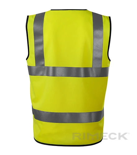 Výstražná vesta s vysokou viditelností, zapínání na suché zipy ve středu předního dílu, prát na 40°C, oděv certifikován dle normy EN ISO 20 471:2013 - oděvy s vysokou viditelností (třída 2), oděv certifikován dle normy EN ISO 13688:2013 - ochranné oděvy, velikost M vhodná pro VP 160-176 cm oh 84-108 cm, velikost 2XL vhodná pro VP 184-192 cm oh 110-140 cm.