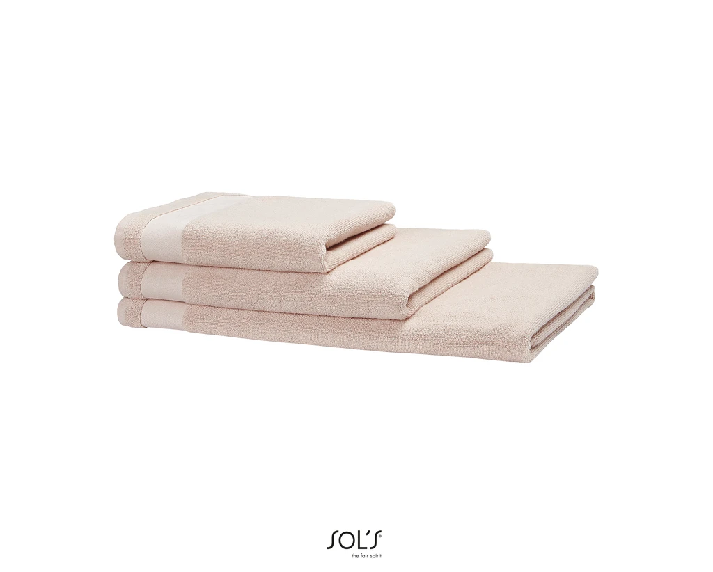 KVALITA: FRENCH TERRY 100% česaná bavlna; Měkký a nadýchaný ručník z francouzského froté, 2-vrstvé smyčky pro lepší savost, jemná bordura (šíře 6 cm) pro aplikaci loga, poutko na zavěšení; Rozměry: 70 x 140 cm; Certifikát: STANDARD 100 by OEKO-TEX®