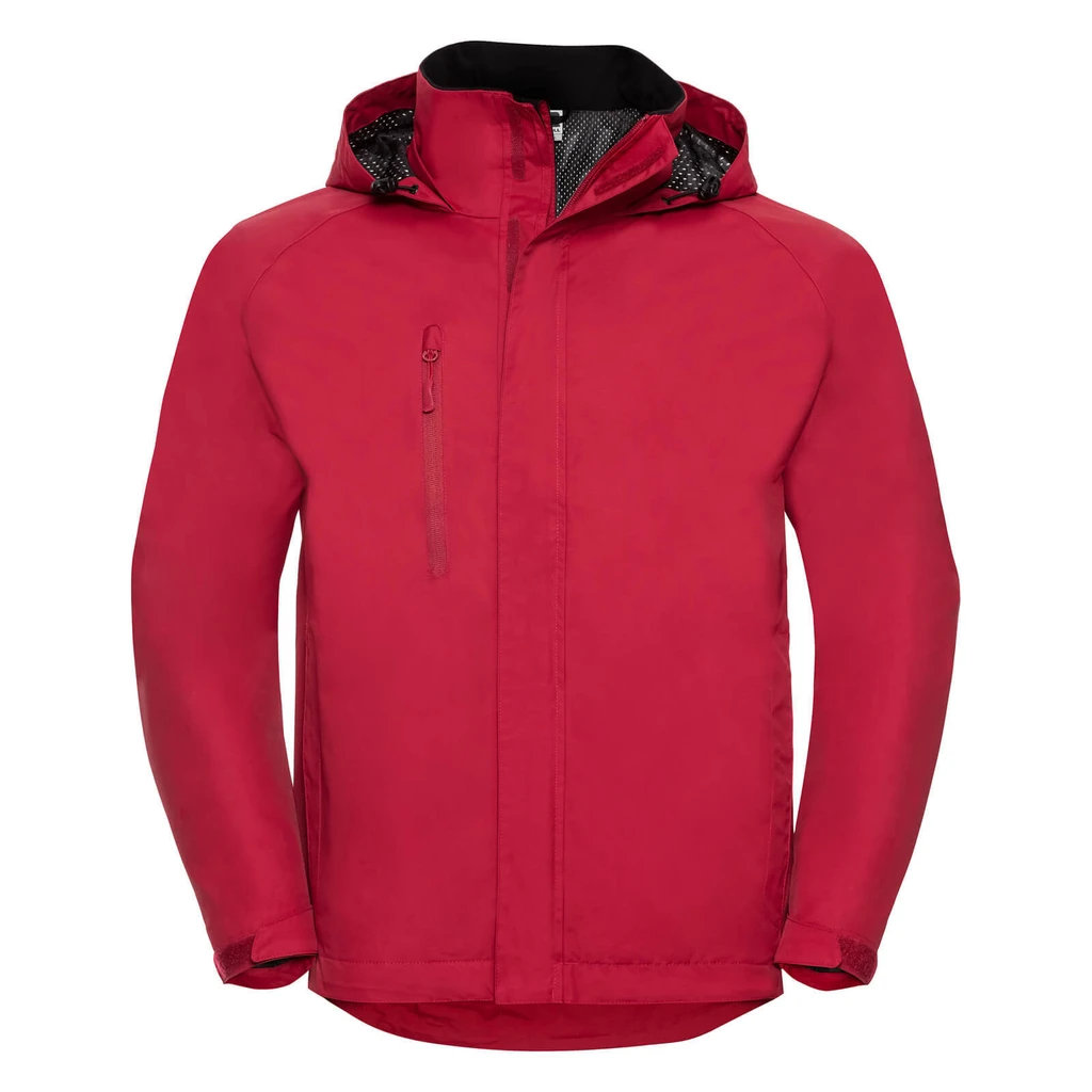 Gramáž: 190 g/m²; Vnější materiál: 100% Nylon Taslan s PV potahem; Vnitřní materiál: síťová podšívka; Voděodolná na 2.000 mm, prodyšná (2000 g/m² v 24 h), trojdílná kapuce v límci, zip ve stejné barvě s ochranou na bradu, skrytá chlopeň proti větru na suchý zip, několik kapes na zip, nastavitelné manžety na suchý zip, lehce prodloužený zadní díl, spodní lem s gumičkou a zarážkami, skrytý přístup pro dekoraci na spodním lemu. Certifikáty: STANDARD 100 by OEKO-TEX®; WRAP