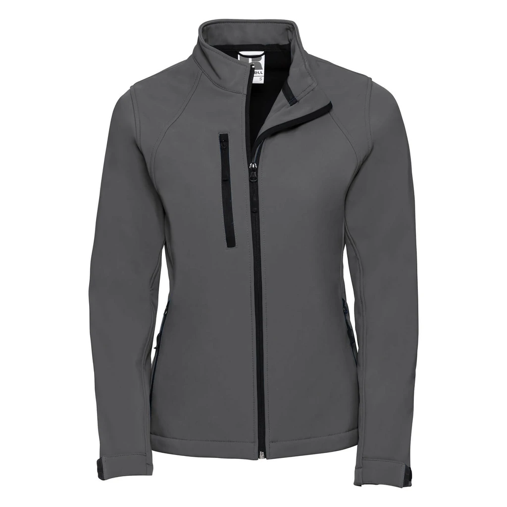Gramáž: 340 g/m²; Materiál: 92% polyester, 8% elastan; Podšívka: 100% polyester microfleece; Dámská softshellová bunda; Prodyšná trojvrstvá látka softshell, odolná proti větru a dešti (5000mm), výztužná páska za krkem, dlouhý zip s ochranou na bradu, různé kapsy na zip, manžety na suchý zip, nastavitelný spodní lem pomocí šňůrky se zarážkami, zaoblená zadní část, dámský projmutý střih. Certifikáty: STANDARD 100 by OEKO-TEX®; WRAP