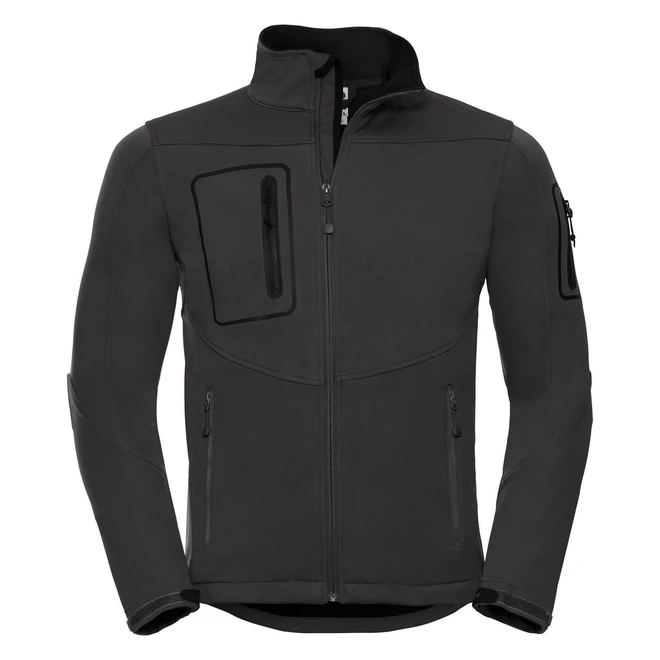 Prodyšná (do 5.000 g/m²/24 hod.), třívrstvý softshell materiál, YKK zip s ochranou na bradu a panelem proti větru, kapsy na prsou a rukávech se zipem odolným proti dešti, postranní kapsy na zip, vnitřní kapsa na MP3 přehrávač, nastavitelné konce rukávů, elastická guma se zarážkami ve spodním lemu, přiléhavý střih. Certifikáty: STANDARD 100 by OEKO-TEX®; WRAP